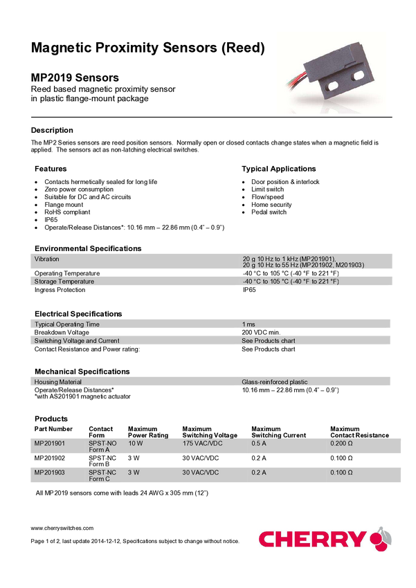 MP201901 ZF MP201901 Kontaktron 1 NO 175 V/DC, 175 V/AC 500 mA 10 W