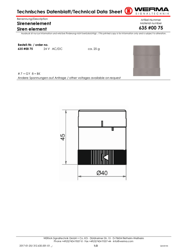 635.800.75 Element sygnalizacyjny "Brzęczyk" Werma Signaltechnik 24 V/AC...