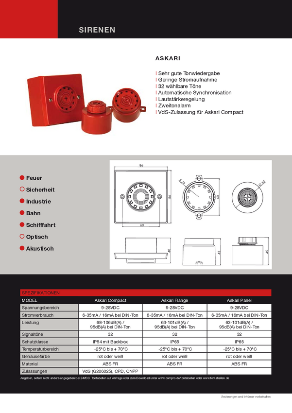 AF/R Brzęczyk elektroniczny - wielotonowy ComPro Askari Flange 9-28V/DC IP65...