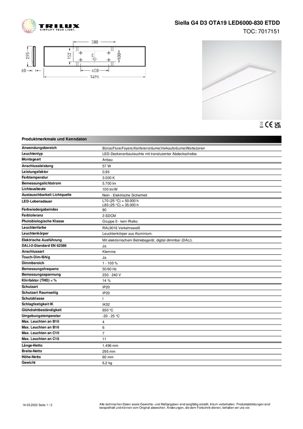7017151 Lampa sufitowa LED Trilux Siella G4 D3#7017151 7017151 57 W 5700 lm biały