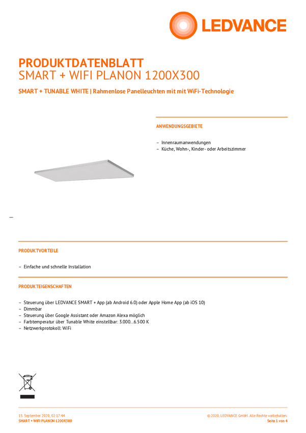 4058075484498 Lampa sufitowa LED LEDVANCE SMART+ TUNABLE WHITE 1200X300 4058075484498 40...