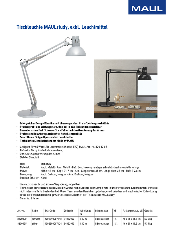 8230490 Lampa stołowa Maul MAULstudy 8230490 E-27 czarny