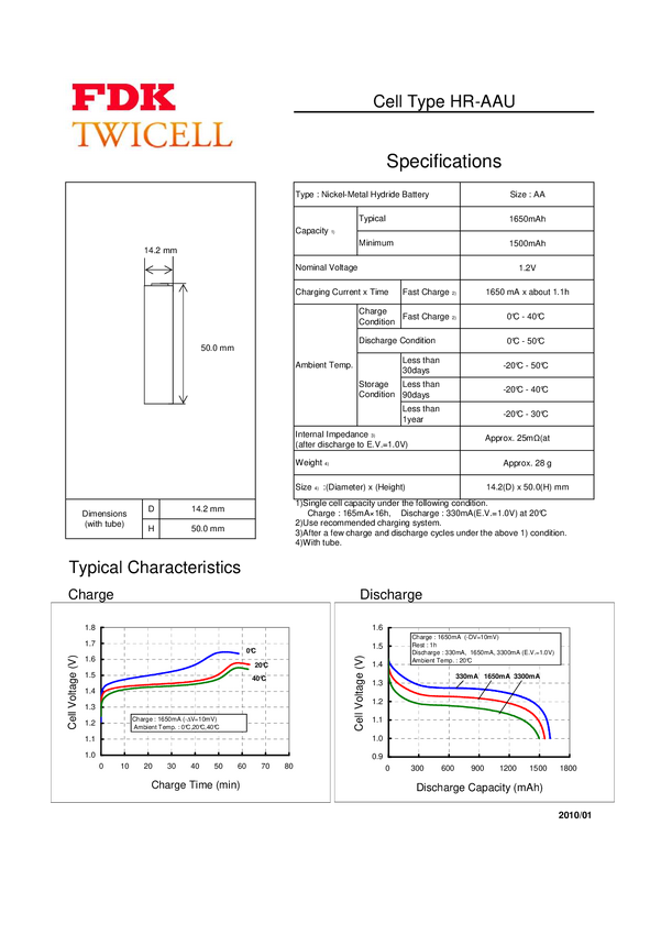 Akumulator AA/R06 FDK HR-AAU 110032, NiMH, 1650 mAh, 1.2 V, 1 szt.