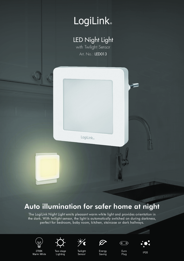 Lampka nocna LED z czujnikiem zmierzchu LogiLink LED013
