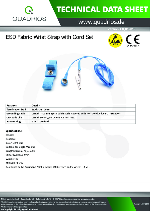 1903EC035 Opaska ESD na nadgarstek Quadrios 1903EC035