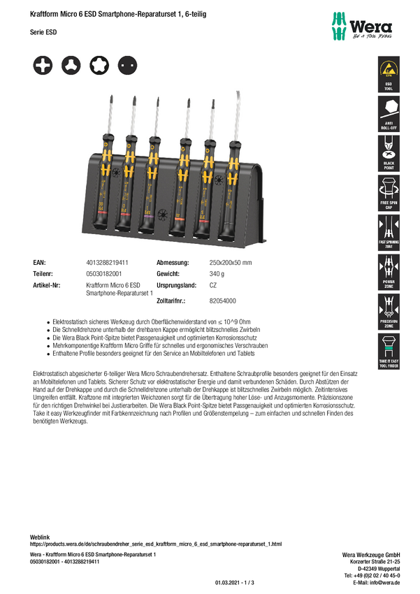 05030182001 Wera Kraftform Micro 6 ESD 05030182001 Zestaw narzędzi do smartfona
