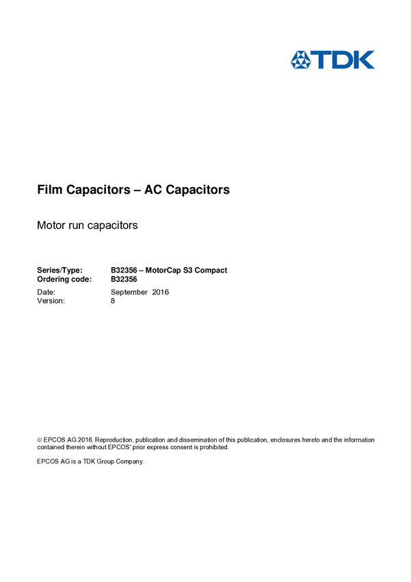 B32356B4305J076 TDK B32356B4305J076 5 % 450 V/AC Kondensator pracy silnika 1 szt.