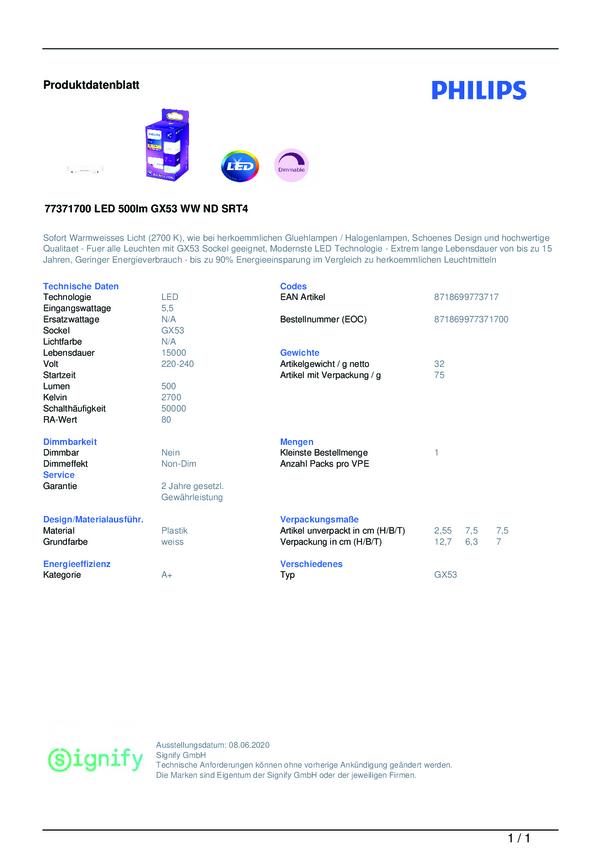 Żarówka LED Philips LED 77371700 GX53 5.5 W = 40 W 500 lm ciepła biel 1 szt.