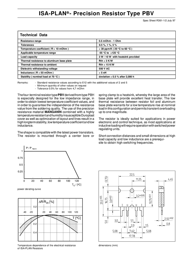 Rezystor pomiarowy Isabellenhutte PBV 0,02, 0,02 Ohm, 10 W, 0,5 %