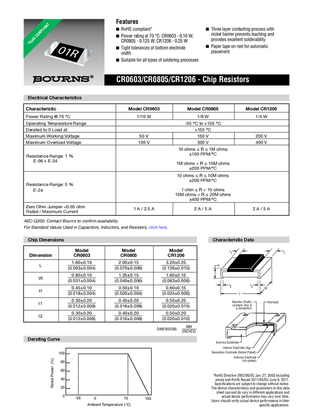 CR1206-FX-3300ELF Bourns CR1206-FX-3300ELF Rezystor grubowarstwowy 330 Ω SMD 1206 0.25 W 1 %...