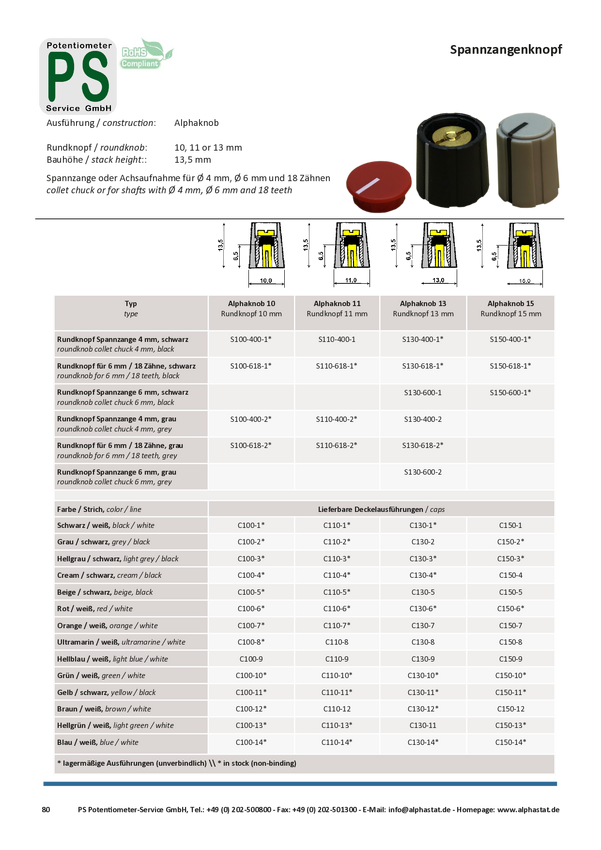 S100-618-1 PSP S100-618-1 S100-618-1 Pokrętło czarny (Ø x W) 10 mm x 13.5 mm 1 szt.