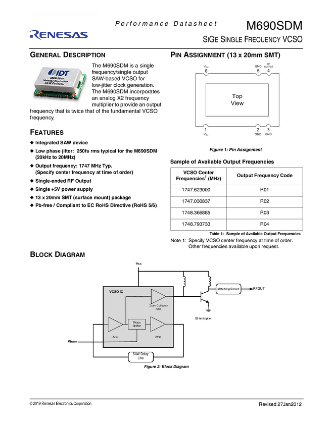 M690SDM-R01 Sige Single Frequency VCSO