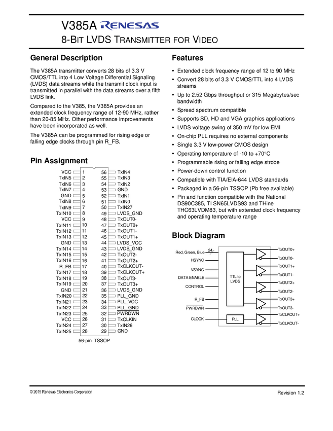 V385AEGLF 8-Bit LVDS Transmitter