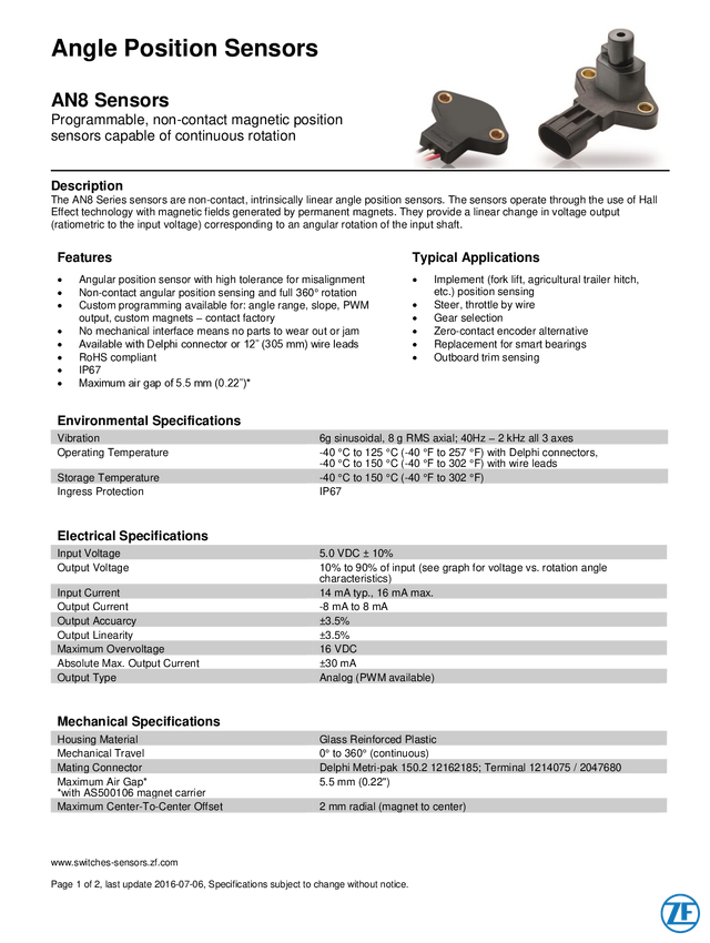 AN820032 Czujnik wychylenia ZF AN820032 Zakres pomiarowy: 360 ° (max) analogowe zasi...