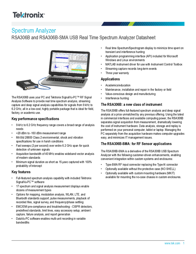 RSA306B Analizator widma Tektronix RSA306B RSA306B