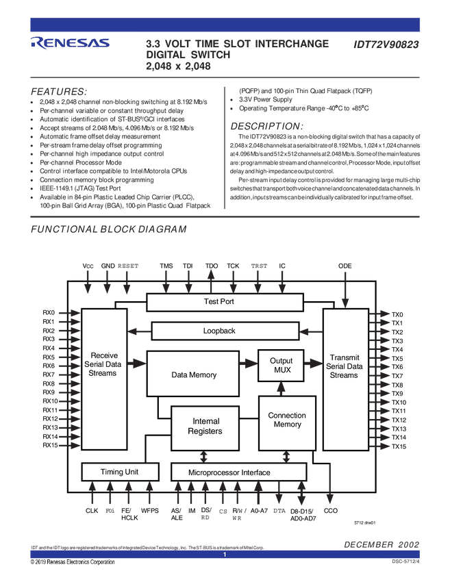 2K x 2K TSI, 16 I/O at 2/4/8Mbps, 3.3V