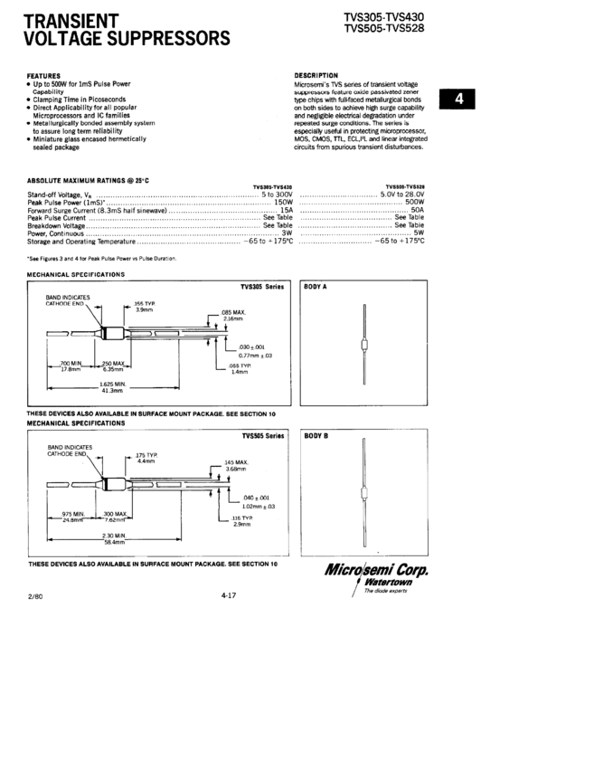 TVS315 Standard Unidirectional and Bidirectional TVS