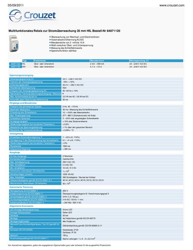 84871120 Przekaźnik monitorujący 24, 24 - 240, 240 V/DC, V/AC 2 zestyki prze...