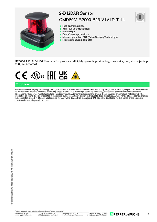 317294 Pepperl+Fuchs OMD60M-R2000-B23-V1V1D-T-1L Czujnik LiDAR 2D 1 szt. (S x W) 1...