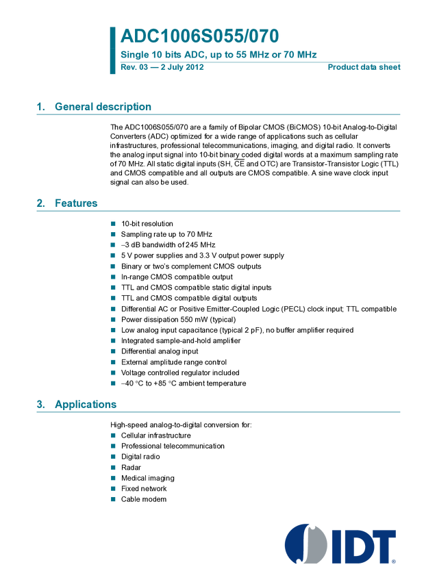ADC1006S055H-C1 Single 10 bits ADC up to 55 Msps