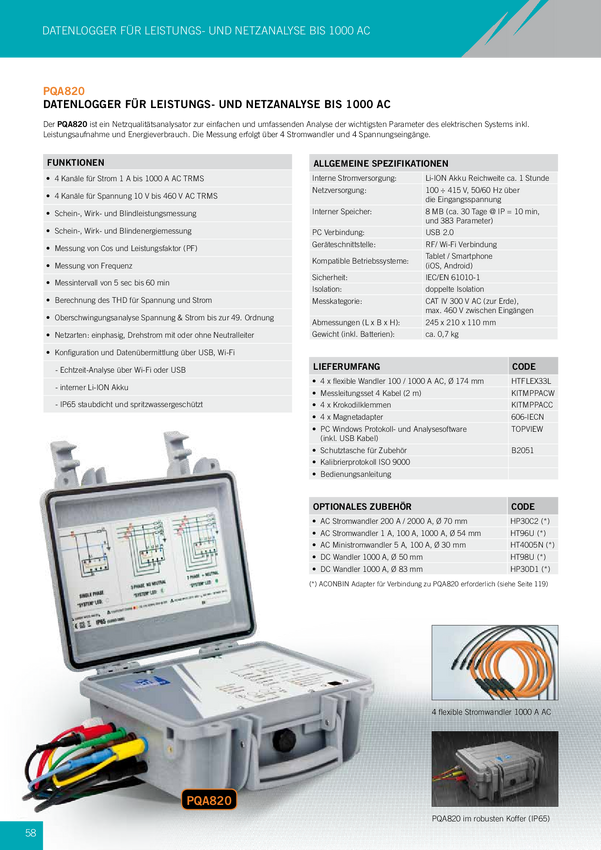 1009710 HT Instruments PQA820S Rejestrator danych pomiarowych Kalibracja (ISO)