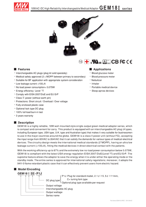 AC-PLUG-MIX2 Adapter wtyczki MEAN WELL AC-PLUG-MIX2 1 szt.