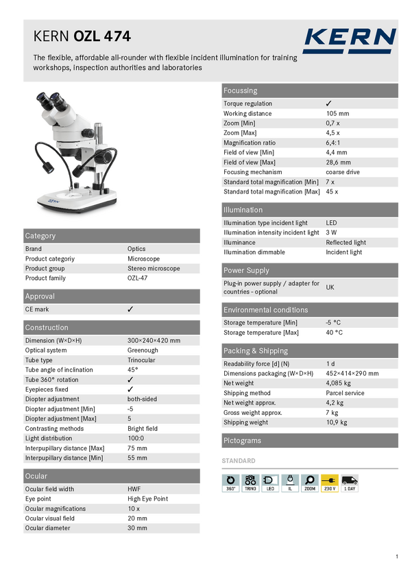 OZL 474 Kern OZL 474 OZL474 Mikroskop stereo-zoom trzyokularowy 4.5 x