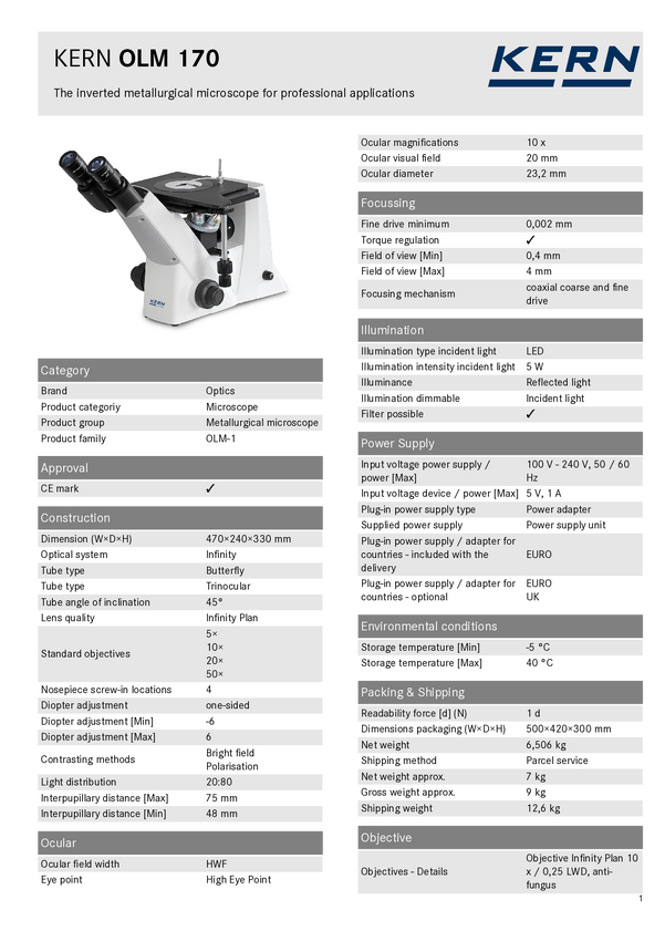Kern OLM 170 OLM170 Mikroskop metalograficzny trzyokularowy 50 x