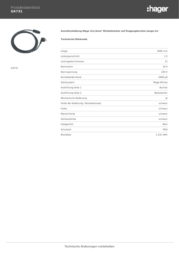 G4731 Adapter przyłączeniowy sieci zasilania Hager G4731 1 szt.
