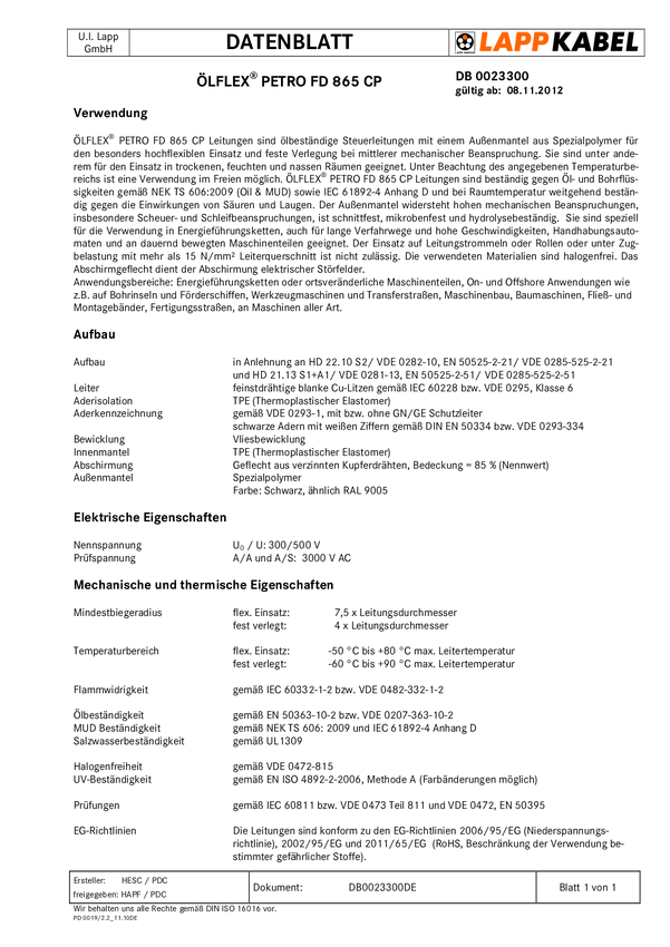 23335/50 Przewód do prowadnicy kabli LAPP ÖLFLEX PETRO FD 865 CP 4G1,5 23335/50,...