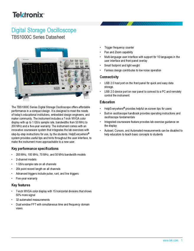 TBS1102C-ISO Oscyloskop cyfrowy Tektronix TBS1102C 100 MHz 1 GSa/s Kalibracja (ISO)