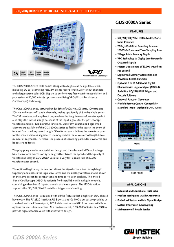 01DS2104A0GT Oscyloskop cyfrowy GW Instek GDS-2104A 100 MHz 2 GSa/s