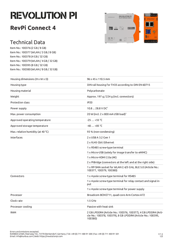 PR100376 Moduł rozszerzeń PLC Revolution Pi by Kunbus RevolutionPi Connect 4 PR10037...
