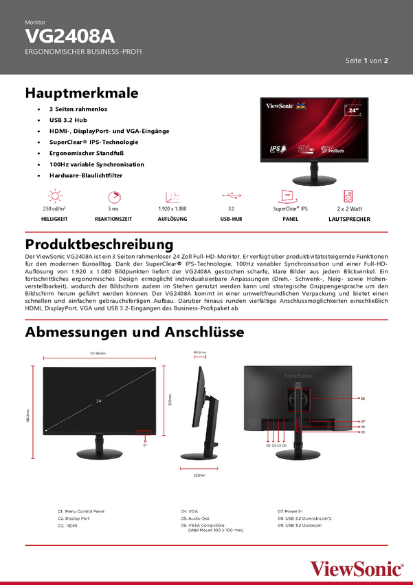 VG2408A Viewsonic VG2408A Monitor EEK E (A - G) 60.5 cm (23.8 cal) 1920 x 1080 px 1...