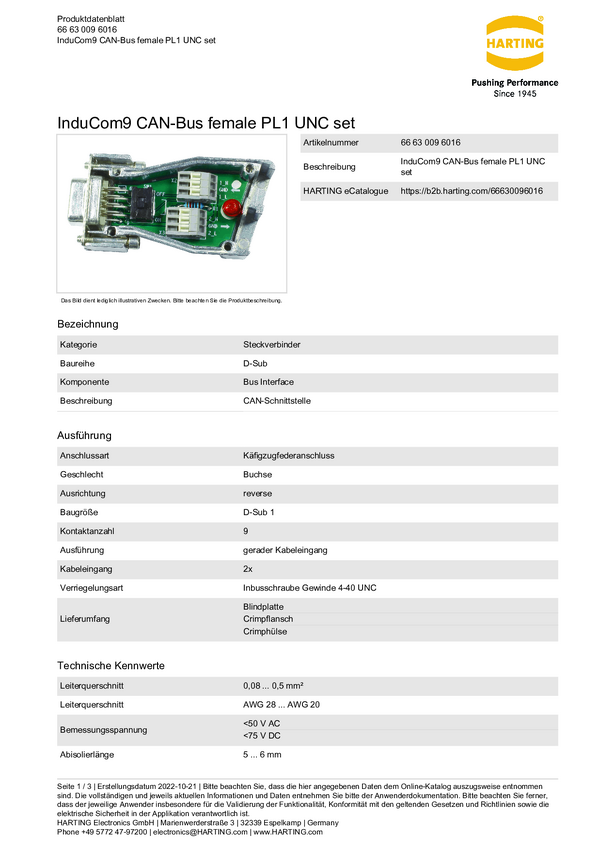 66630096016 Interfejs magistrali Harting 66630096016 Połączenie zacisku klatki -