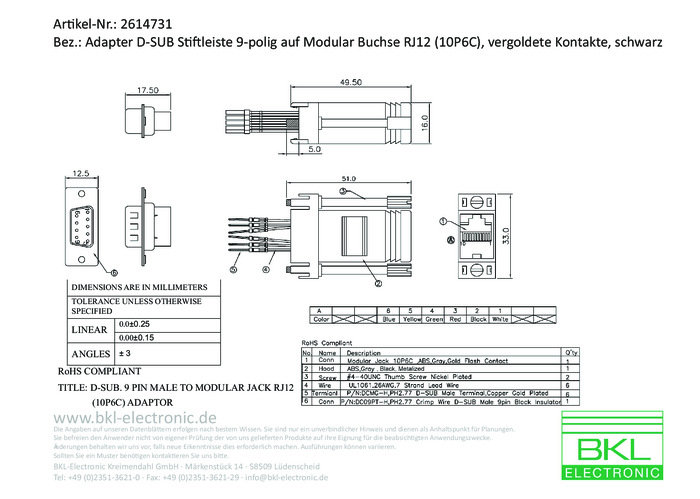 Adapter BKL Electronic 10121104 złącze męskie D-SUB 9-pin - złącze żeńskie RJ12