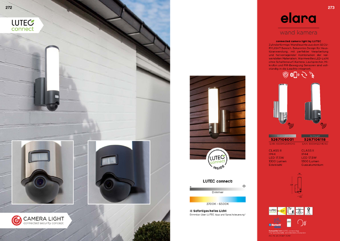 5267106001 Lampa ścienna LED z czujnikiem ruchu Lutec ELARA 5267106001 17.50 W IP44