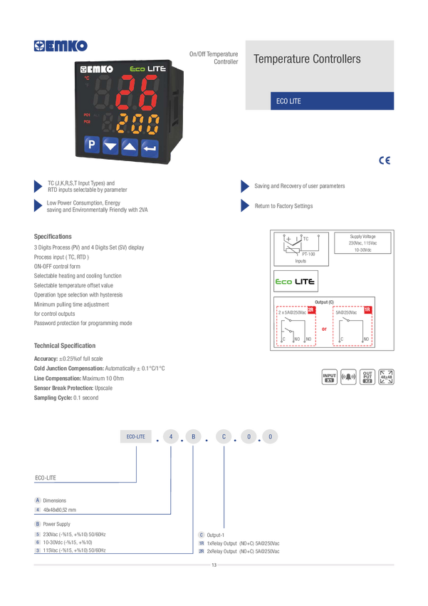 ecoPID.4.5.1R.S.485 Emko ecoPID.4.5.1R.S.485 Termostat Pt100, J, K, R, S, T, L -199 do +999 °C...