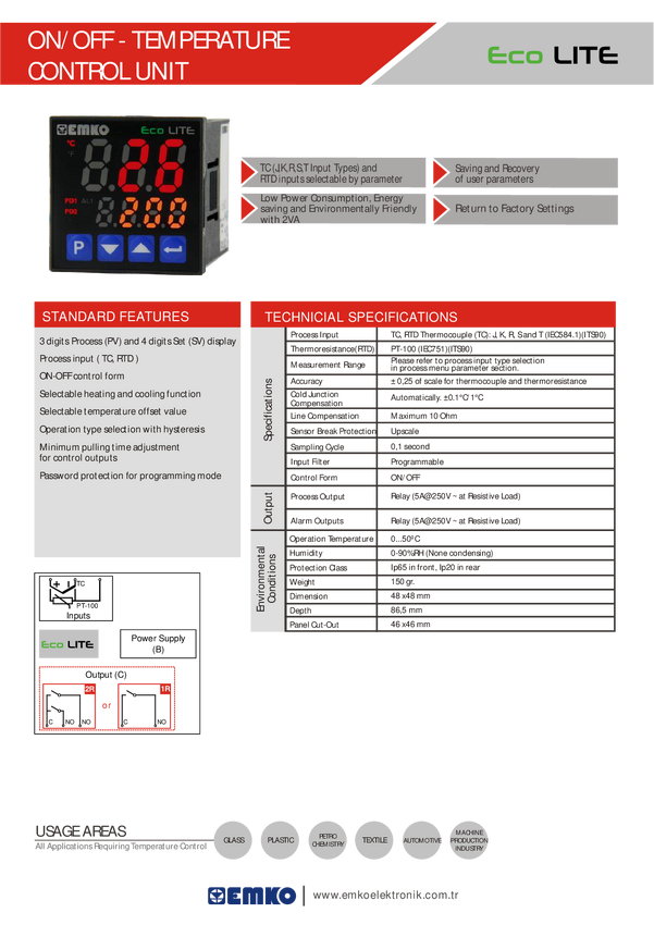 ecoLITE.4.6.2R.0.0 Termostat Emko ecoLITE.4.6.2R.0.0 Pt100, J, K, R, S, T, L -199 do +999 °C P...