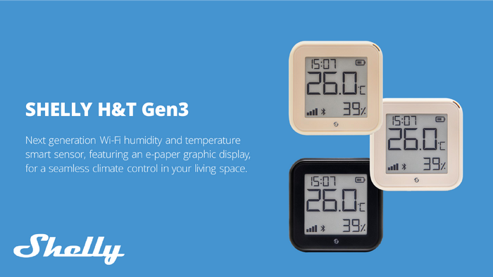 Shelly H&T Gen 3 Mocha Bezprzewodowy czujnik temperatury, wilgotności Bluetooth, Wi-Fi