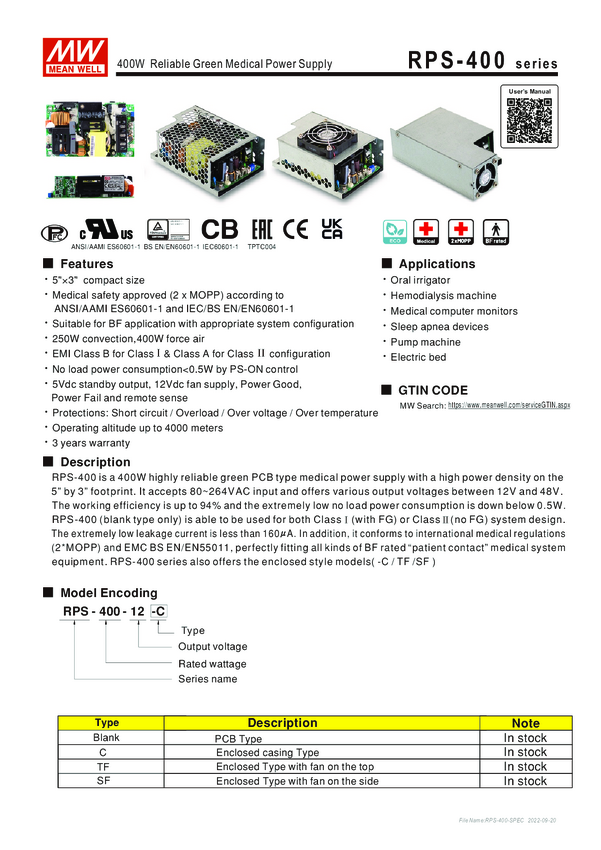 RPS-400-24 MEAN WELL RPS-400-24 Zasilacz 24 V/DC 16.7 A 400.8 W, 249.6 W