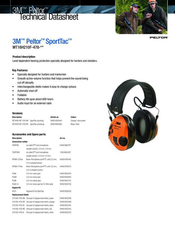 MT16H210F-478-GN 3M Peltor SportTac MT16H210F-478-GN Nauszniki ochronne impulsowe 26 dB 1 sz...
