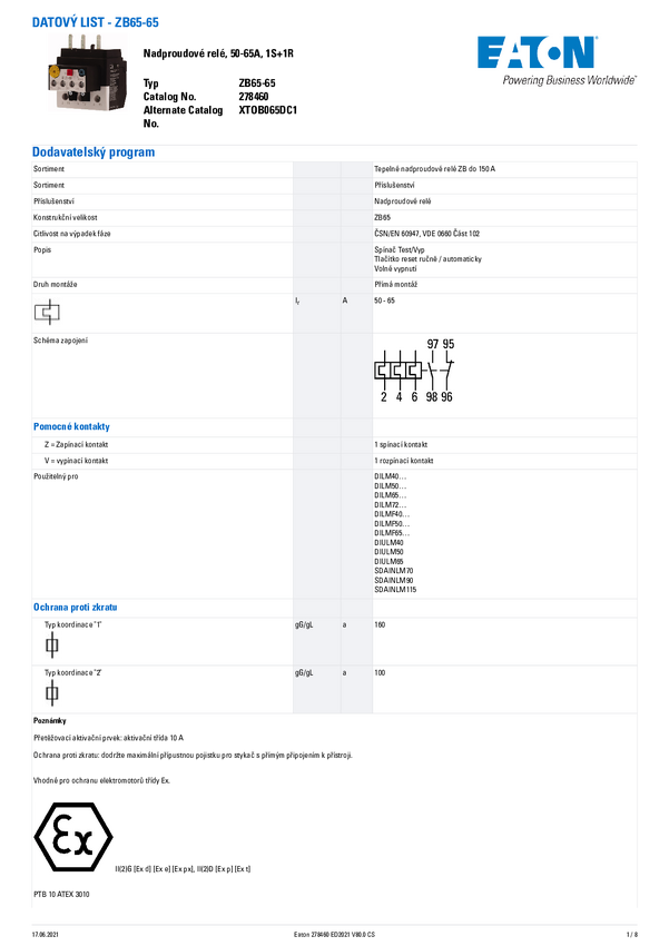 278460 Przekaźnik ochronny silnika Eaton ZB65-65 1 szt.