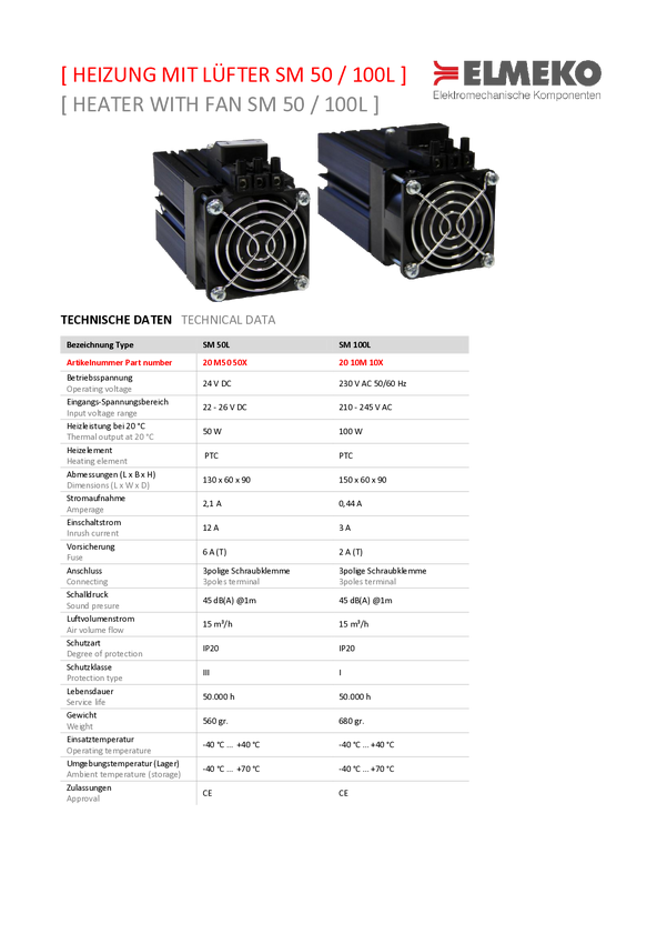 Ogrzewanie szafy rozdzielczej Elmeko SM 50L 22 - 26 V/DC 50 W (D x S x W) 130 x 60 x 90 mm