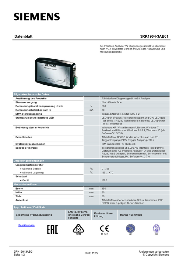 Interfejs PLC Siemens 3RK1904-3AB01 3RK19043AB01