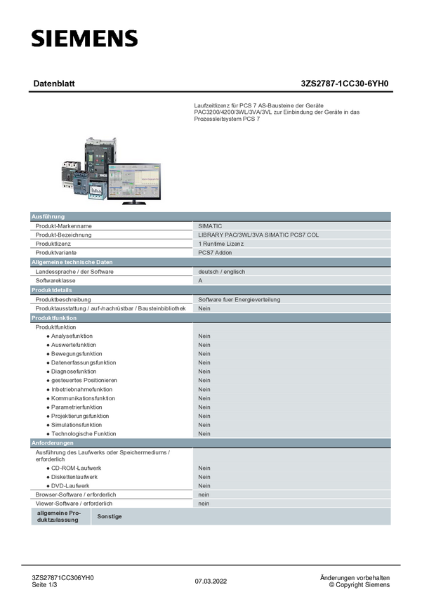 Oprogramowanie PLC Siemens 3ZS2787-1CC30-6YH0 3ZS27871CC306YH0