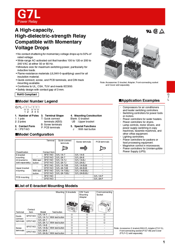 Omron G7L-1A-TUB 6DC Przekaźnik mocy, monostabilny, 1 cewka, 250 V/AC, 30 A, 1 szt.