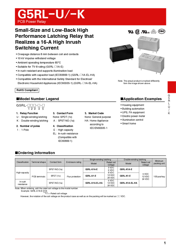 G5RL-K1A-E-DC24 Omron G5RL-K1A-E-DC24 Przekaźnik mocy 24 V/DC 16 A 1 NO 1 szt. torba