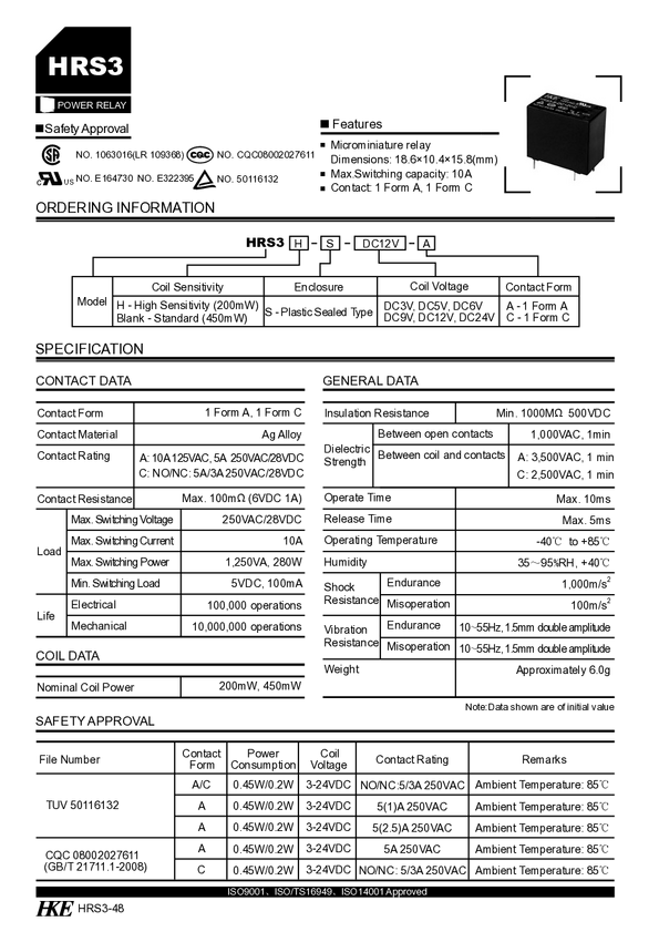 1366585 HKE HRS3-S-DC24V-A Przekaźnik SMT 24 V/DC 10 A 1 NO 1 szt.