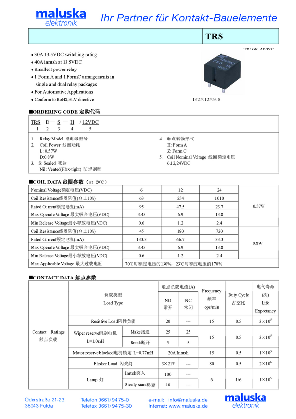 TRS-L-24VDC-S-Z Przekaźnik wysokoprądowy TRS Tianbo Electronics TRS-L-24VDC-S-Z 24 V/DC...